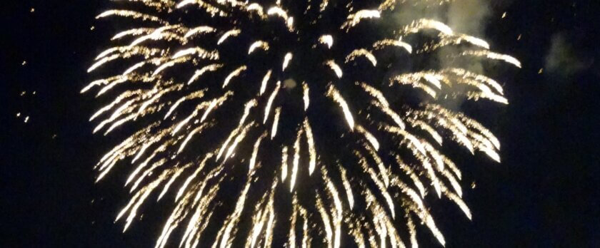 舌喰池の北側で打ち上げられる花火は、上空に打ち上がると、池の周りにいた者としては、真上に上がる感じ。首を後ろに90度近く傾けなければ見えない。