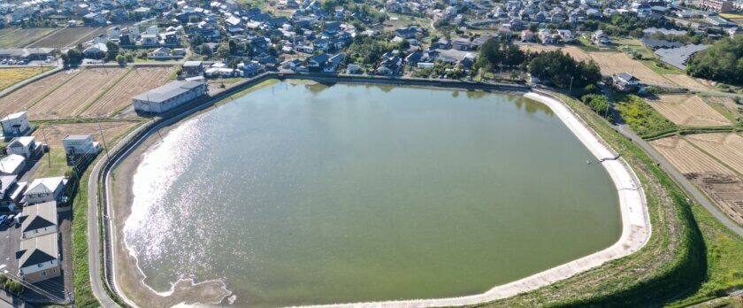 ドローンで撮影された塩田のため池を見るシリーズの4回目です。