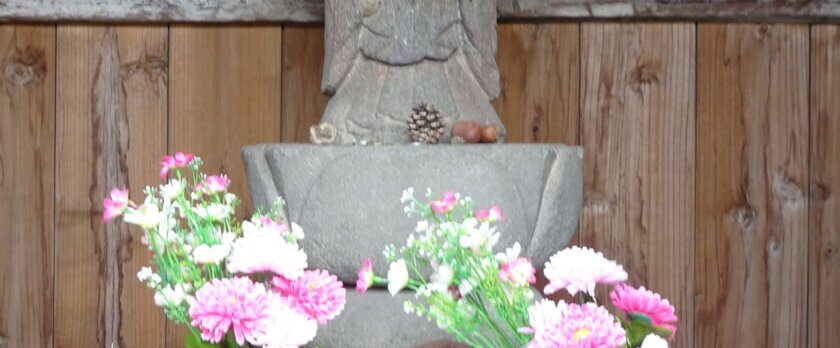 まずは、東の方にある「鉄焼地蔵」(かなやきじぞう)です。「鉄」でできているわけではありません、石造です。道端の小さなお堂に安置されています。造られたのは江戸時代の終わりに近い頃の1807年。高さは55cmです。子育て地蔵とも呼ばれ、子どもが周りで遊んでいても怪我がないと言われています。雨乞い地蔵でもあるのです。