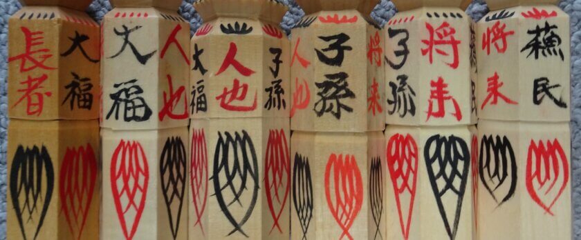 わが信濃国分寺の蘇民将来符は、木製の六角柱。それぞれの面には「蘇民」「将来」「子孫」「人也」「大福」「長者」という文字が書かれています。