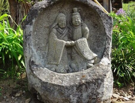 この像、立っている二人の両脇に徳利と盃が彫られています。写真ではよくは見えないですけど。やっぱり祝言の様子なのです。
