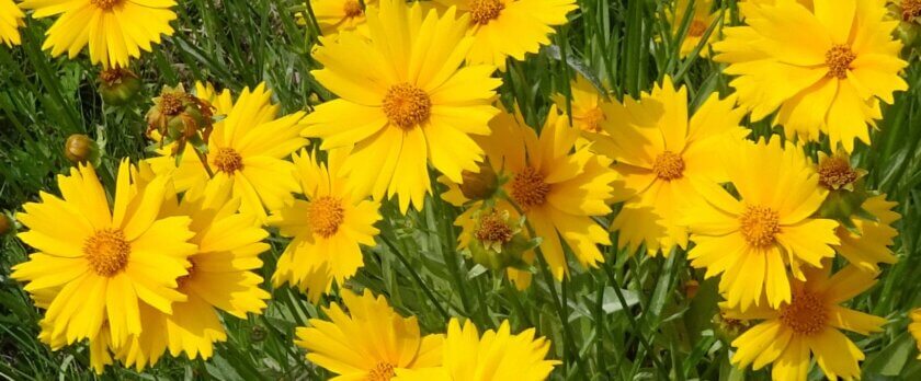 鮮やかな黄色い花がこれだけまとまって生えていると、壮観です。団地の前の道路側に何メートルにもわたってズラッと並んだ花の列。