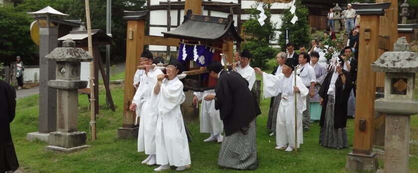 このお宮、祭神は塩垂津彦命(しおたるつひこのみこと)で、お祀りしているのは全国でここだけ。だったのですが、永禄年間(1558~1569年)に武田信玄の命で祇園天王を合祀するようになったのです。そして祇園祭が始まり、もう450年以上も続いています。市の無形文化財になっています。