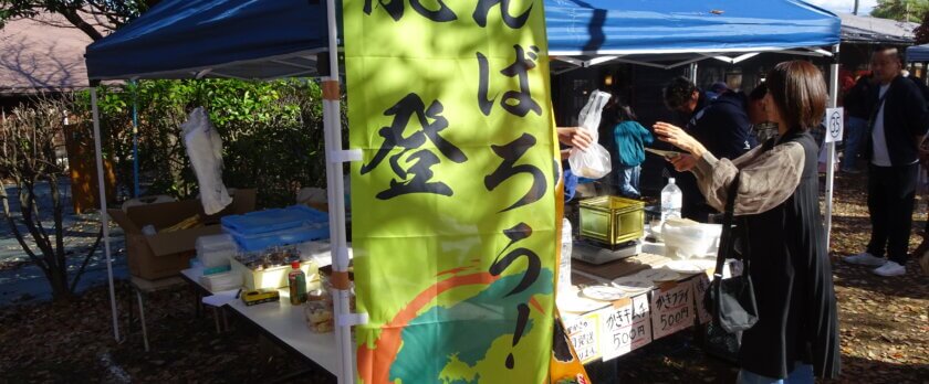 深山の広い庭や駐車場にはたくさんのテントやキッチンカー。中でも人気だったのが、能登かきを焼いたのを売るお店。長蛇の列です。「能登のかきはうまいんだろうなあ」と思いつつ、列の長さに断念。