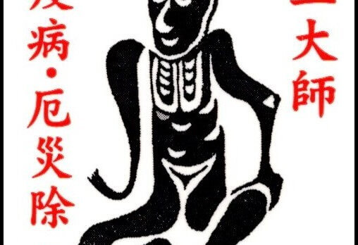 彼は、疫病が流行ったとき、疫病神を退治するために祈ったところ、姿がだんだん鬼になっていったそうです。そこで「角大師」(つのだいし)とも呼ばれているとのこと。鬼になったのは疫病神を退散させるためでしょうが、それが功を奏して疫病が終息したようで、その鬼の姿を写し取ったものが魔よけの札として全国各地の天台宗のお寺で頒布されているようです。このあたりのお寺では見かけませんが。