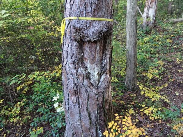 太平洋戦争の末期、日本軍は松根や松脂を採取しガソリンと混合して戦闘機燃料にしようとしました。手が届く範囲の松幹に独特のノコギリで矢羽状に切りつけ、出てくる脂を下に置いた缶に貯め、工場で加工して供出したとのこと。ただ、実際にどの程度使用できたかは不明です。そんなことまでしなければいけなかったほど日本は追い込まれていたんですね。