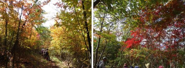 紅葉の盛りには1週間ほど早いかもしれませんが、歩きながら見る色とりどりの木々はきれいですね。