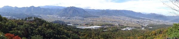 明神岩は、ふもとの塩田自然運動公園からも見ることができます。遠くからでも見えるので、岩からも塩田一帯を眺める見晴らし台になると、昔の人は思ったのかもしれません。(F森)