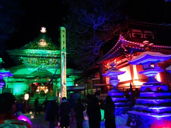 北向観音堂で行われた2月3日の節分の豆まき。その3日後から始まったのが、このお堂を中心に繰り広げられた「氷灯ろう夢まつり」です。