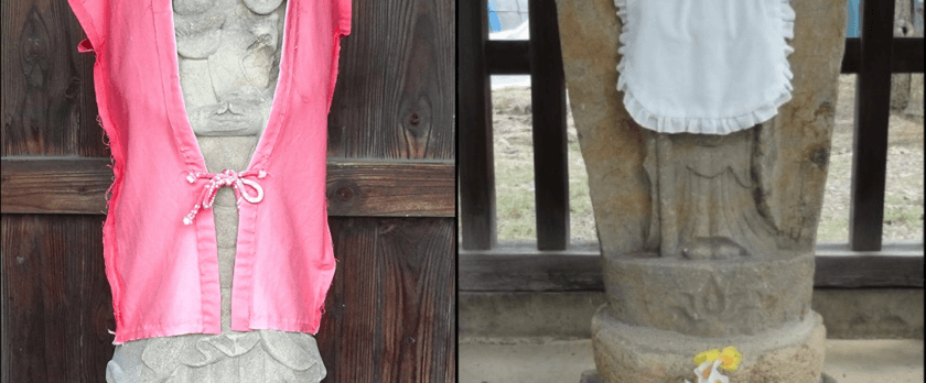 下本郷と下小島のどちらのお地蔵さんも、お供え物や着物などを見ると、今も地域の人たちに大切にされていることが分かりますね。