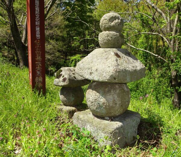 五輪塔は、それぞれ形の違う5層の石でできています。下から「地輪」「水輪」「火輪」「風輪」「空輪」と呼ばれています。信濃国分寺資料館の館長などを務めた尾見智志先生によると、五輪塔というのは、上田地域にはたくさんあるが、長野県でも中信地域や南信地域には少ないのだそうです。