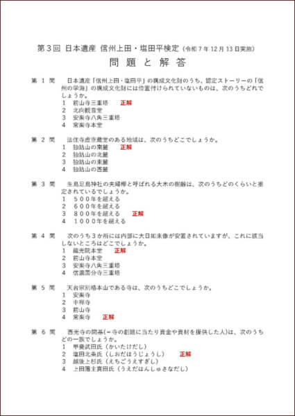 問題は、すべて「信州上田・塩田平の文化財ガイドブック」から出題されました。